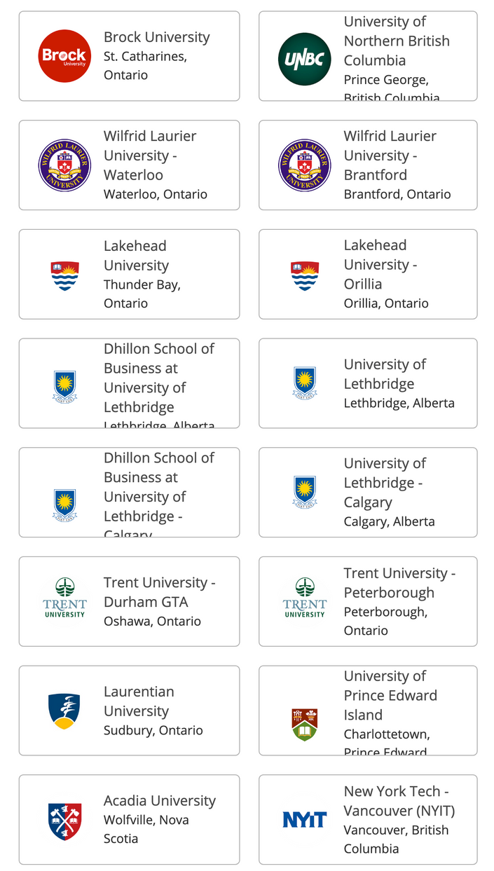 List of Universities/ Colleges - Canada